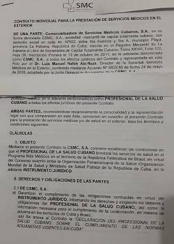 “El profesional de la salud cubano mantiene su relación laboral con la CSMC S.A. sin quedar sujeto a relación laboral alguna con la institución donde presta servicio”, especifica el acuerdo legal, desvinculándolos de cualquier entidad de Brasil, sea el Ministerio de Salud, alcaldías municipales o centros de salud y hospitales, en un intento por aislarlos legalmente del contexto donde ejercen.