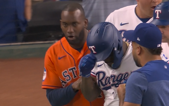 Y la bronca fue de alto octanaje, con los dugouts y los bullpens metidos en el diamante. Adolis, Abreu y el mánager de los Astros, Dusty Baker, fueron expulsados en un jirigay que tuvo detenido el partido por casi 15 minutos. Muy bien por Yordan Álvarez, quien desde el primer momento estuvo junto a su compatriota para calmarlo y evitar daños mayores.