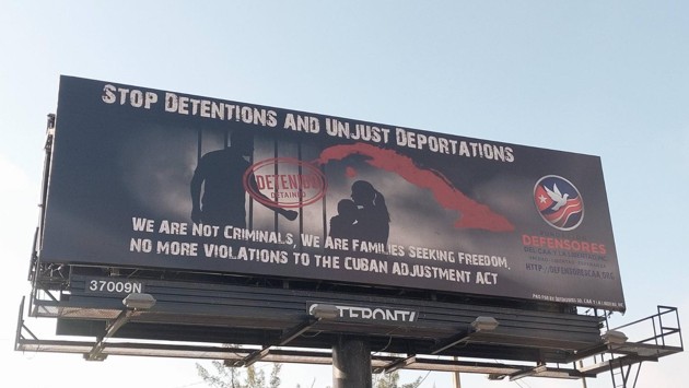 La campaña también ha colgado una valla publicitaria en la autopista Palmetto-826, a la altura de la 17 Avenida y la 50 Calle del noroeste, en la que se pide el fin de las detenciones y deportaciones injustas y el respeto de la Ley de Ajuste Cubano, que está cumpliendo 60 años de su instauración por el Congreso de Estados Unidos.